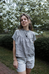 This doesn't mean you have to wear clothing that looks like a potato sack-- instead, look for mid-heavyweight woven linen styles that hit you in all the right places (such as a gathered waistline, pleats at the hips, etc).