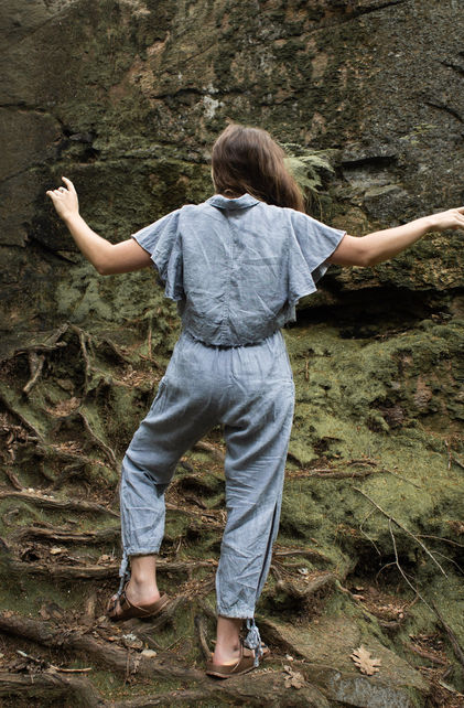MOTHER OF PEARL - Linen cropped button-up top - Naturally Dyed